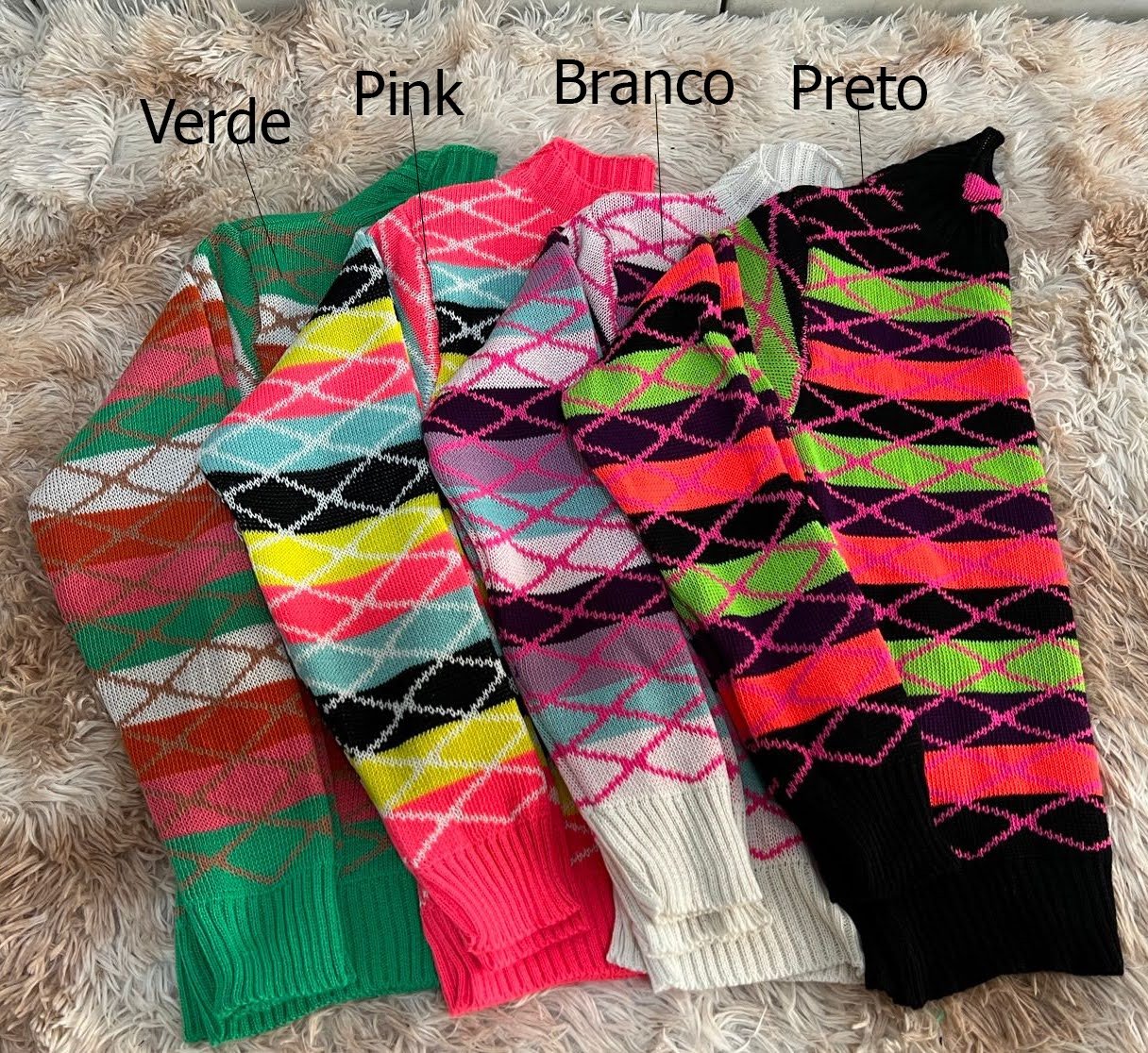 Seja o primeiro a avaliar “Blusa Tricot Manga Longa Listrada Geométrica”