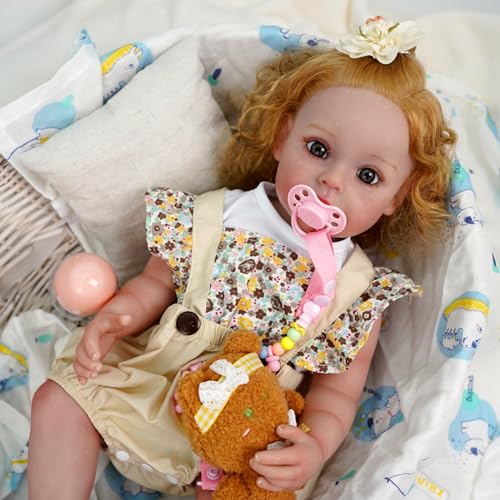 Brastoy Bebê Reborn Boneca Silicone Realistic Menina Loira Original Pode Tomar Banho (55cm Menina Loira)