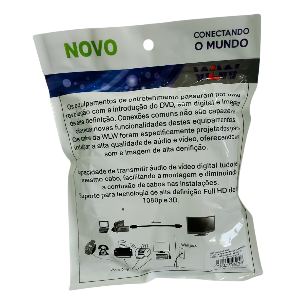 Conecte a extremidade DVI ao dispositivo de saída (computador, notebook, placa de vídeo) e a extremidade HDTV ao monitor ou TV compatível. Pronto para uso imediato, sem necessidade de configuração adicional.