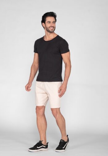 A composição do tecido usado na confecção dessa calça mistura fibras de algodão, que permite tingirmos em qualquer cor e garante toque macio, e o elastano, que dá mobilidade e conforto.