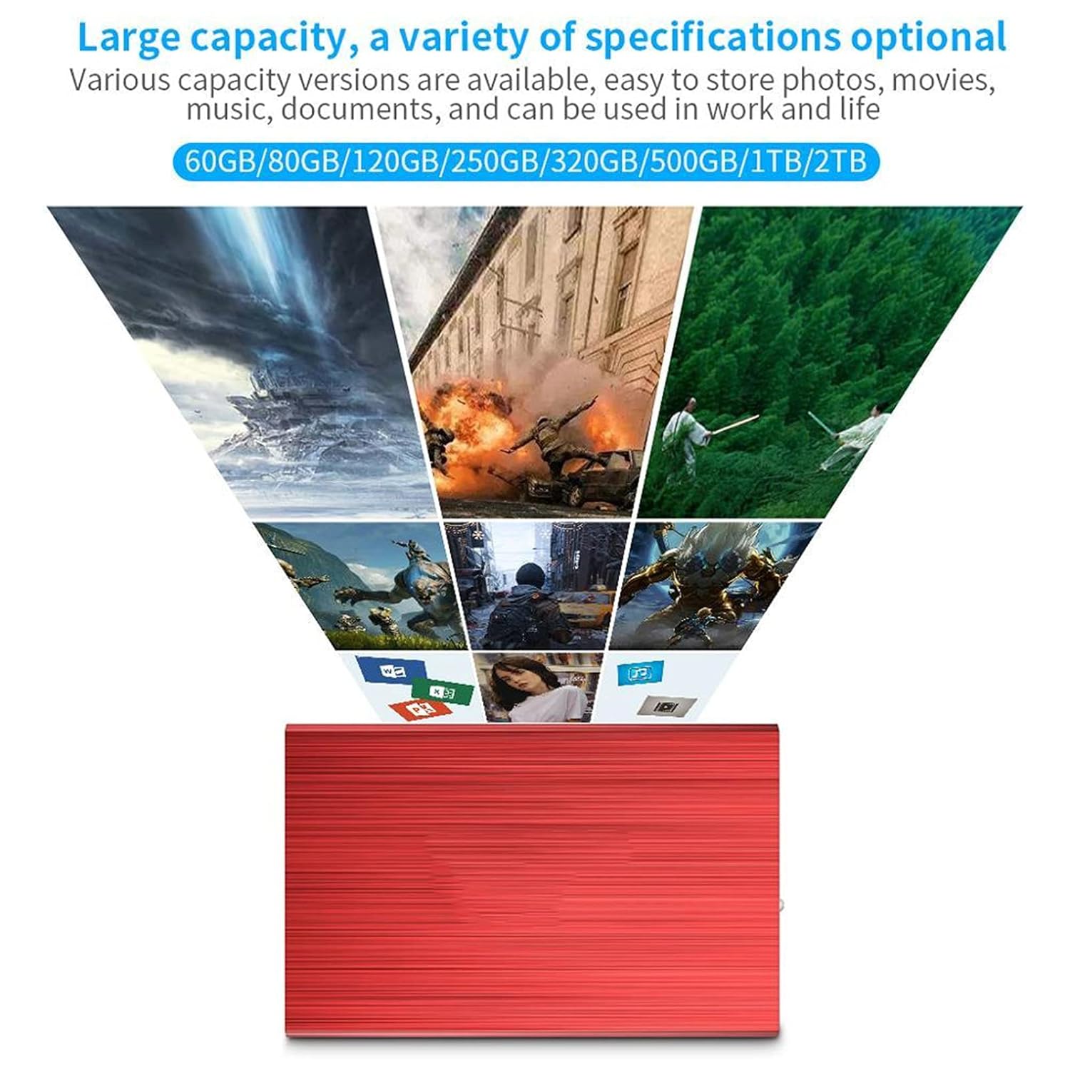 - Fornece armazenamento portátil conveniente, fornece espaço de armazenamento suficiente para sua música, filmes e outros arquivos
