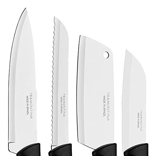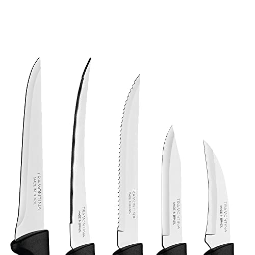 - Com o Jogo de Facas Tramontina Plenus com Lâminas em Aço Inox e Cabos de Polipropileno Preto 9 Peças, você terá a solução completa de facas para utilizar nos mais diversos tipos de cortes e ocasiões gastronômicas. As peças combinam com qualquer cozinha e a deixam mais bonita e clássica, pois seus cabos são na elegante cor preta. As lâminas produzidas em aço inox por terem sido submetidas a tratamento térmico, oferecem maior durabilidade e resistência. As facas são fáceis de limpar e podem ser lavadas na máquina de lavar louças. Com peças únicas e de muita importância na cozinha, o jogo de facas é a escolha perfeita para você. Facas de qualidade e beleza você encontra com a Tramontina!