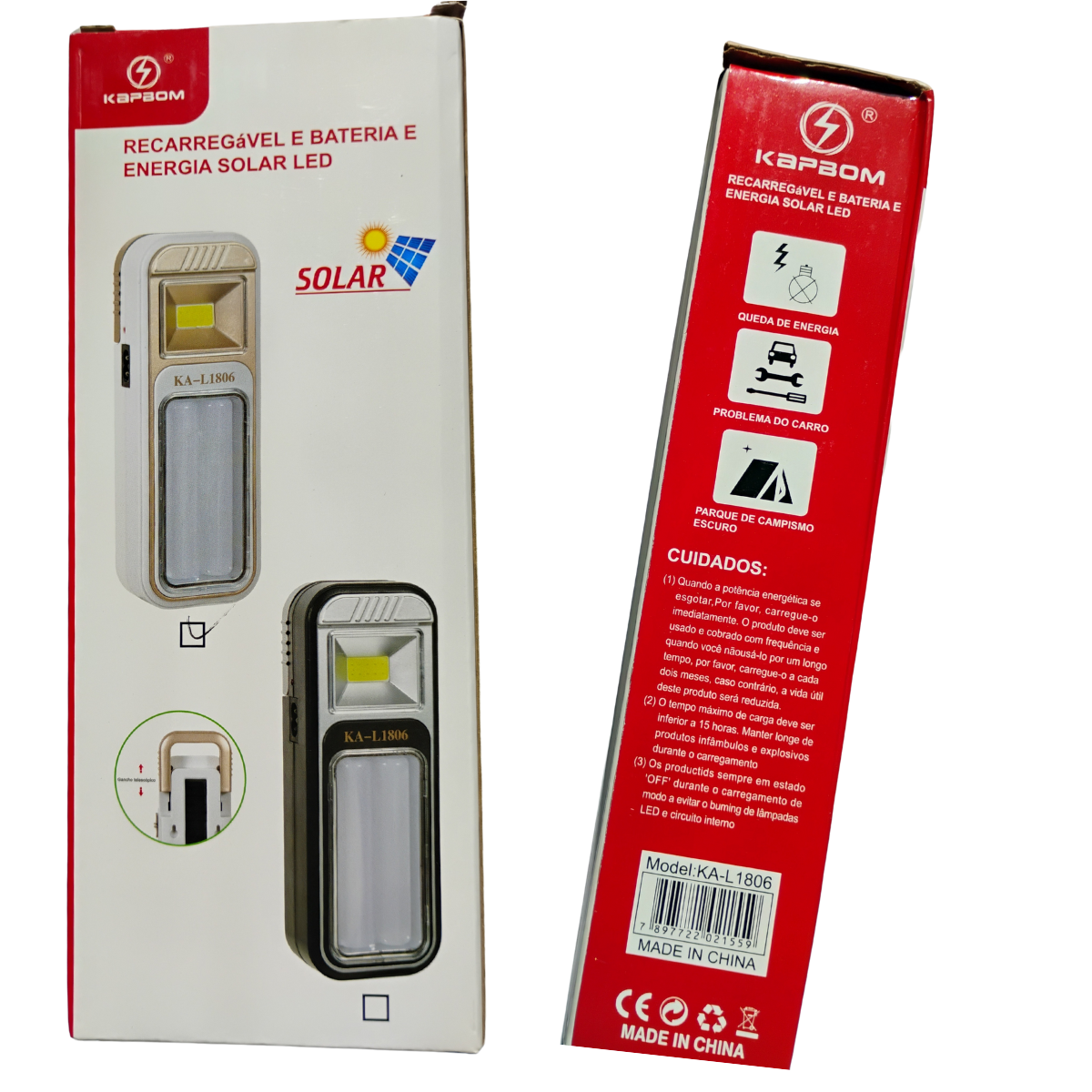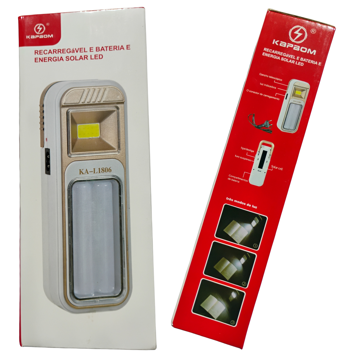 **Luz de Emergência Lanterna Recarregável Solar KA-L1806 | Iluminação Ecológica para Apagões e Aventuras**