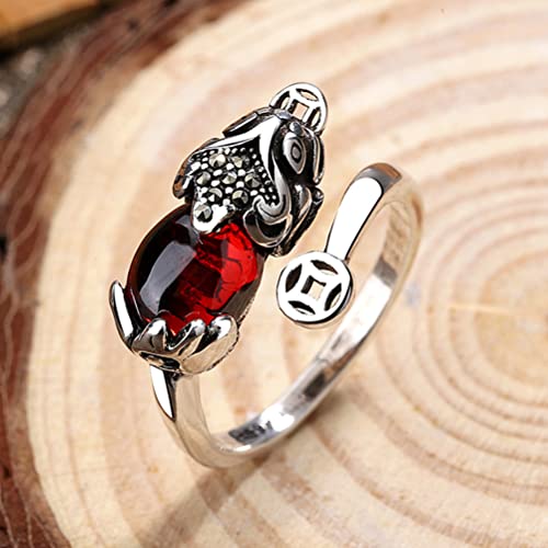 - 【 Design do anel】 Prata esterlina Pixiu incrustado com pedras nas costas, simbolizando movimento auspicioso e afastando os espíritos malignos.