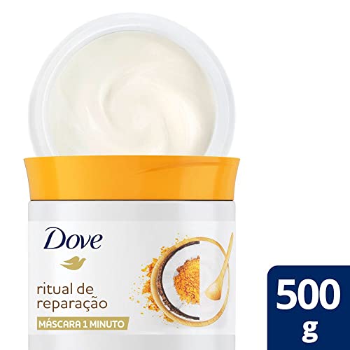 - Máscara Capilar de Tratamento Ritual de Reparação Dove para restaurar os cabelos danificados com ingredientes ativos de origem natural