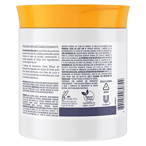 - A Máscara Capilar de Tratamento Dove garante nutrição intensiva que hidrata e cuida profundamente os cabelos deixando-os saudáveis