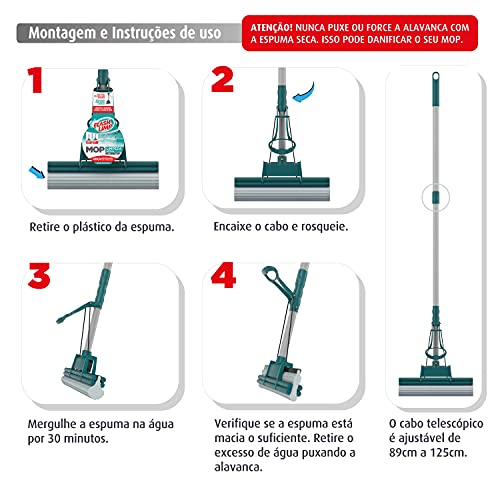 1 Mop completo com cabo telescópico e base com esponja em PVA |