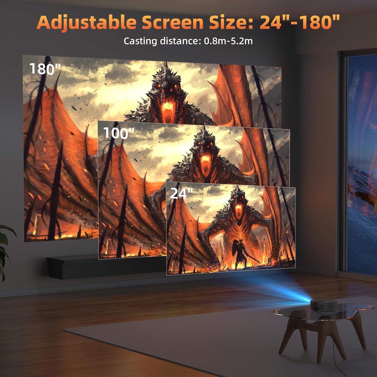 8 avaliações para Projetor Smart 1080P 4k Full HD Portátil com Alto-Falante Integrado, 11000 Lm WiFi 6, Bluetooth 5.0 e Correção Automática – Ideal para Cinema em Casa, Jogos e Externas, bettdow…