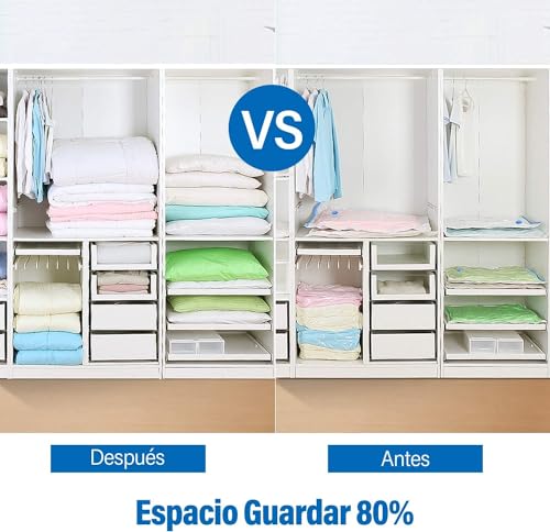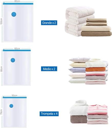 - [Vários tamanhos incluídos] 8 pacotes de sacos para economia de espaço incluem: 4*50x70cm+2*60x80cm+2*80x100cm. Tamanhos diferentes atendem às suas diversas necessidades para armazenar itens diferentes, perfeitos para guardar roupas, casacos, colchas, travesseiros, edredons, lençóis, toalhas, cobertores etc.