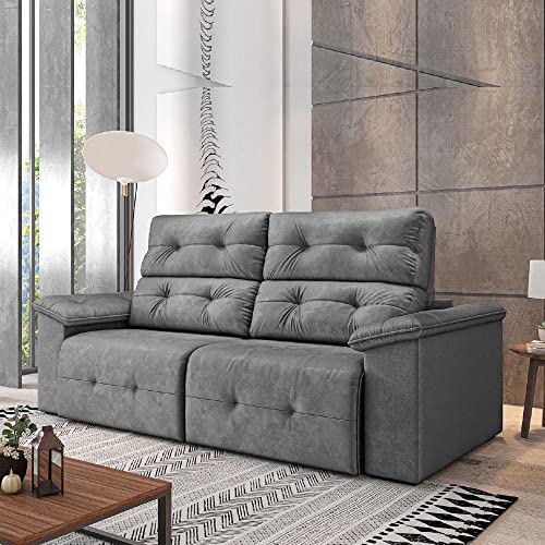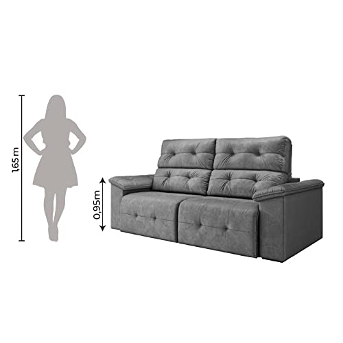 Sofá Retrátil Reclinável 1,95m Cama 3 Lugares Marrocos Cinza Suede