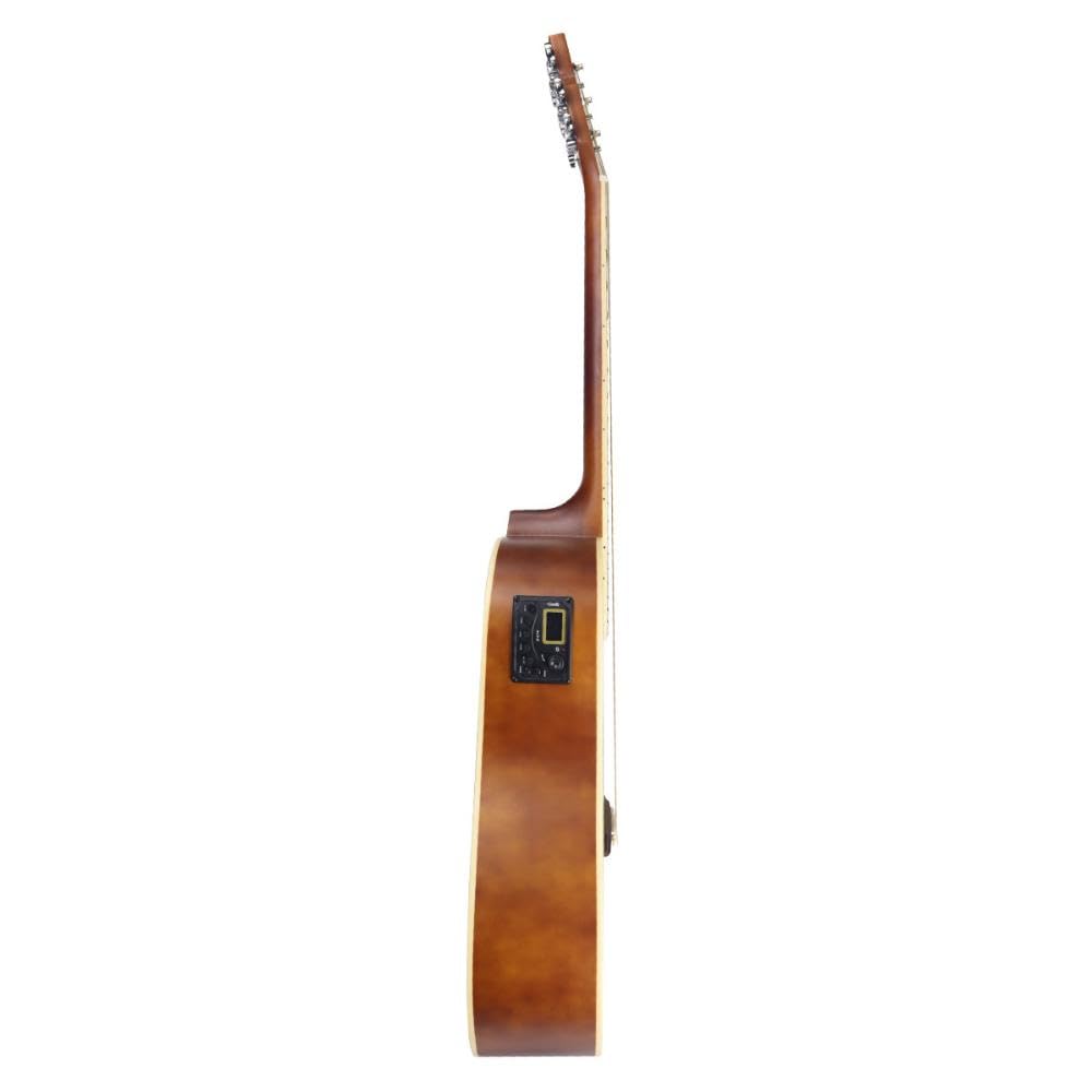 - Devido à sua construção e design exclusivo, o violão produz um som quente com graves ricos, bem como frequências médias definidas.